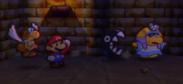 A Squeek wizard is beset on all sides by a storm of 4 Paratroopas – and their allies are firmly set on the ground.